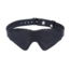 This velvet lined, leather blindfold does an excellent job in creating total darkness. It presses comfortably against the eyes and the the angled shape goes down enough to keep you from peeking underneath.