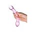 Glas Double Trouble Dildo. This artistically crafted, pink glass double-headed dildo enables deep, pleasurable penetration and stimulation for both. Fracture-resistant, hypoallergenic and easy to clean, this dildo retains heat and cold for increased stimulation and is compatible with all lubricants.