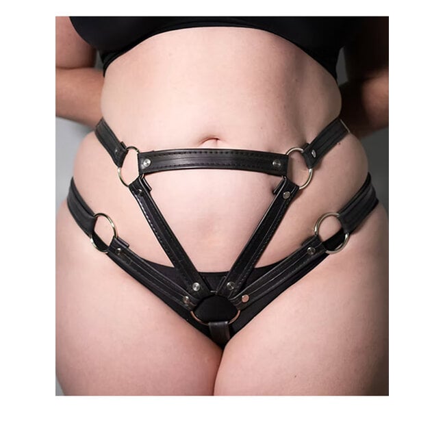 We loved the classic PegnPedal Hip Harnes so much we had to get their other strap-on harness design! There aren't too many harnesses out there that are high-waisted, which can help with strap-on stability since it is going over the hips instead of on or under them. The extra straps just also give it a sexier look: more straps, more o-rings! It is still one of the easiest harnesses to clean since the straps are made out of recycled bike inner tubes.